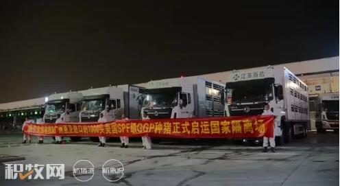 1000頭SPF級(jí)GGP種豬卸機(jī)后,永信農(nóng)牧籌備組統(tǒng)一將種豬從木箱轉(zhuǎn)到了10輛空調(diào)車上。此次運(yùn)輸車輛全部嚴(yán)格按照海關(guān)檢驗(yàn)檢疫要求進(jìn)行檢測(cè),10輛空調(diào)車檢測(cè)結(jié)果全陰性,保障了該批種豬的高健康度。轉(zhuǎn)運(yùn)期間,10輛空調(diào)車在警車的協(xié)助下,緩緩駛?cè)胗佬呸r(nóng)牧信陽(yáng)國(guó)家隔離場(chǎng),即將進(jìn)行為期45天的隔離,45天隔離期滿后放行,再次轉(zhuǎn)運(yùn)進(jìn)入永信農(nóng)牧泰寧核心場(chǎng)。