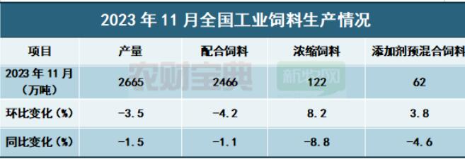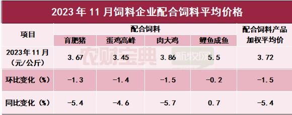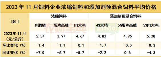 2、濃縮豬料價(jià)格同比下跌7%11月份,全國(guó)飼料價(jià)格呈下降趨勢(shì)。