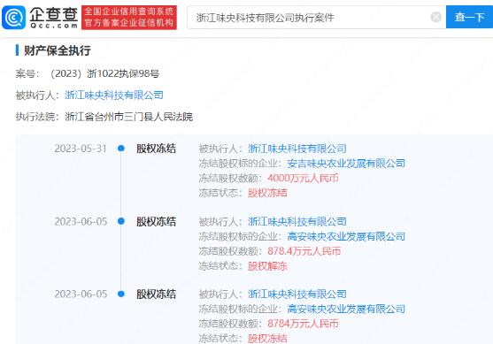 天眼查App顯示,近日,網易未央關聯公司浙江味央科技有限公司新增2則股權凍結信息,股權被執行企業包括安吉味央農業發展有限公司、高安味央農業發展有限公司,凍結股權金額分別為40...