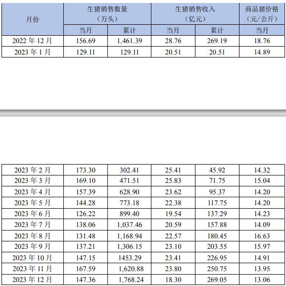 江西正邦科技股份有限公司1月9日公布2023年12月份生豬銷售情況簡報。