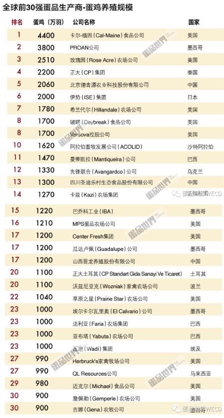 在今年的數(shù)據(jù)統(tǒng)計(jì)中,前30強(qiáng)蛋品企業(yè)的榜單繼續(xù)被美洲公司占據(jù),幾乎占到上榜公司的三分之二。其次是亞洲公司,占比近三分之一。