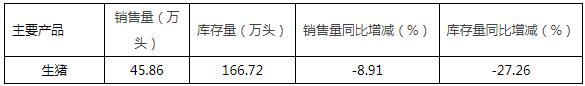 2023年10月,公司生豬銷售量45.86萬頭,同比減少8.91%。