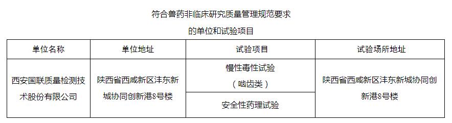 附件:1.符合獸藥非臨床研究質量管理規范要求的單位和試驗項目