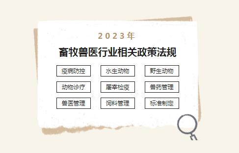 歲月不居,時節如流,又到了年終總結的時刻!在2023年里,畜牧獸醫行業出臺了許多新的政策/法規,協會已分門別類為大家整理好了最全的政策法規合集,從動物疫病防控、水生動物、野生動物、動物診療、屠宰檢疫、獸藥管理、獸醫管理、飼料管理、標準制定9個方面進行整理,快往下看看并轉發/收藏起來吧!