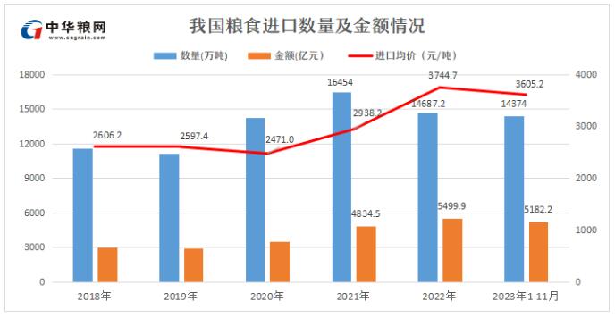 中國11月玉米進口量為359萬噸,同比增加384.2%;中國1-11月玉米進口量共計2218萬噸,同比增加12.3%。