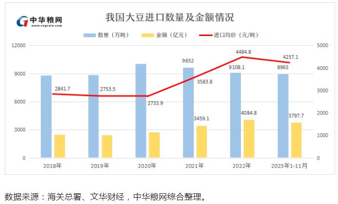 中國11月大豆進口792萬噸,較上年同期增加約9.8%,1-11月我國累計進口大豆8963萬噸,同比增長13.3%。