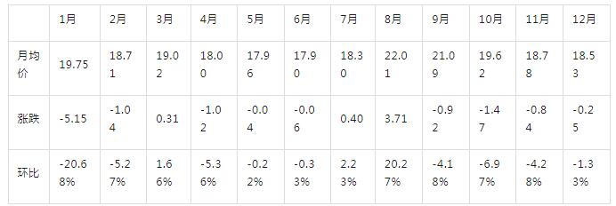 據Mysteel農產品數據顯示,2023年前三等級白條均價在19.16元/公斤;同比下跌23.39%。12月29日價格為18.45元/公斤,較1月1日價格下跌2.83元/公斤,跌幅在12.72%;其中,年中最高價在8月2月,價格為22.78元/公斤;最低價在4月17日,價格為17.43元/公斤。