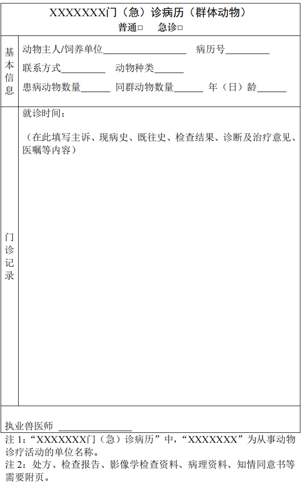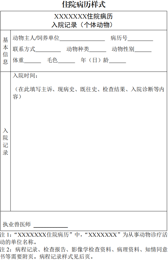 7. 病歷樣式可參考附件形式,動(dòng)物診療機(jī)構(gòu)也可根據(jù)本機(jī)構(gòu)實(shí)際情況設(shè)計(jì)病歷樣式。