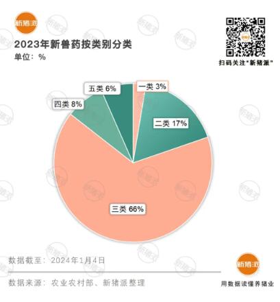 而普萊柯則是以5個公司或平臺,分別承載動物檢測技術、大動物生物制品和化藥,不同用途新藥的專業化分點運作,2023年共申報6個新獸藥,其中就包括一項一類新獸藥和多項二類新獸藥,是獸藥創新平臺生力軍。